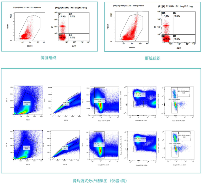 樣品通過雙向的機(jī)械切割與消化酶混合作用,通過恒溫消化,組織剪切,得到高濃度的活細(xì)胞懸液。后續(xù)經(jīng)過消化終止,過濾洗滌,必要時(shí)加以紅細(xì)胞裂解等步驟,可得到百萬到千萬級別的活細(xì)胞,不同的組織均可以達(dá)到90%以上的細(xì)胞得率。